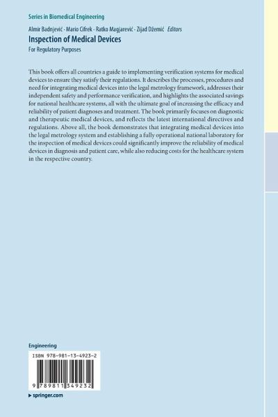 This book offers all countries a guide to implementing verification systems for medical devices to ensure they satisfy their regulations. It describes the processes, procedures and need for integrating medical devices into the legal metrology framework, addresses their independent safety and performance verification, and highlights the associated savings for national healthcare systems, all with the ultimate goal of increasing the efficacy and reliability of patient diagnoses and treatment. The book primarily focuses on diagnostic and therapeutic medical devices, and reflects the latest international directives and regulations.