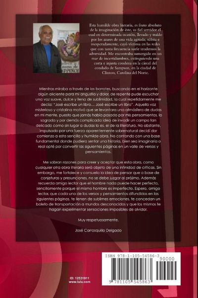 Esta humilde obra literaria, es fruto absoluto de la imaginación de éste, su fiel servidor el cual en determinada ocasión, llevado y traído por los azares de una vida agitada; súbita e inesperadamente, cayó víctima en las redes que con tanta frecuencia suele tendernos la adversidad. Me encontraba sumergido en un mar de incertidumbres, extinguiendo una corta e injusta condena en la cárcel del condado de Sampson, en la ciudad de Clinton, Carolina del Norte.