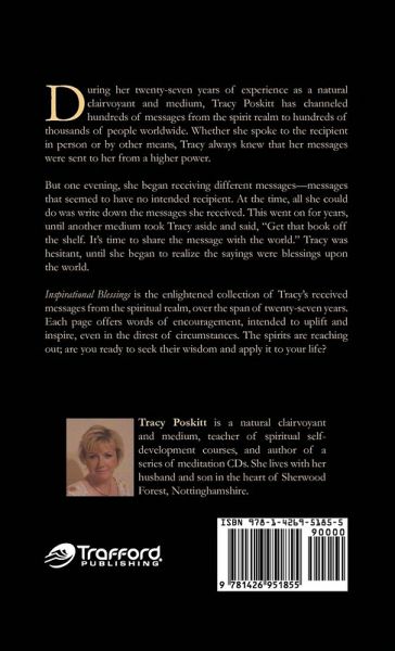 During her twenty-seven years of experience as a natural clairvoyant and medium, Tracy Poskitt has channeled hundreds of messages from the spirit realm to hundreds of thousands of people worldwide. Whether she spoke to the recipient in person or by other means, Poskitt always knew that her messages were sent to her from a higher power. But one evening, she began receiving different messages-messages that seemed to have no intended recipient. At the time, all she could do was write down the messages she received. This went on for years, until another medium took Poskitt aside and said, "Get that book off the shelf. It's time to share the message with the world." Poskitt was hesitant, until she began to realize the sayings were blessings upon the world. Inspirational Blessings is the enlightened collection of Poskitt's received messages from the spiritual realm, over the span of twenty-seven years. Each page offers words of encouragement, intended to uplift and inspire, even in the direst of circumstances. The spirits are reaching out; are you ready to seek their wisdom and apply it to your life?