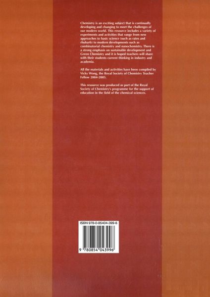 Chemistry is an exciting subject that is continually developing and changing to meet the challenge of our modern world. This resource includes a variety of experiments and activities that range from new approaches to basic science (such as rates and rhubarb) to modern developments such as combinatorial chemistry and nanochemistry. There is a strong emphasis on sustainable development and Green Chemistry and it is hoped teachers will share with their students current thinking in industry and academia. All materials and activities have been compiled by Vicky Wong, the Royal Society of Chemistry Teacher Fellow 2004-2005. This resource was produced as part of the Royal Society of Chemistry's programme for the support of education in the field of the chemical sciences.