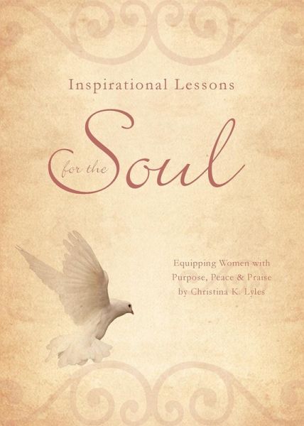 The dynamic voice of author Christina Lyles will prick your mind, saturate your soul, and motivate you in fulfilling Gods divine purpose for your life. The profound Lessons for the Soul provide women of all ages with the battle plans for success in their home, ministry, career, and relationships. Christina focuses on being prepared to face the weapons of mass corruption challenging the family structure, moral values, and unity of the faith that Christ has instructed women to uphold and teach. With a tone of rhyme and reason, Dialogue for the Young Sistas provides a range of contemporary dialogue for teenage girls and young women, equipping them with the principles of self-confidence, integrity, and boldness to flip the script on the enemy and write a new chapter in their lives filled with purpose, praise, and prestige. Find out how women today can remain spiritually prosperous, peaceful, and proactive in their daily lives as the walls of uncertainty are torn down. Discover Gods divine purpose for women in the Word and will of God. Inspirational Lessons for the Soul lives up to its name by inspiring the study of Gods Word, revealing lessons in life, and promoting grace and wisdom to women.