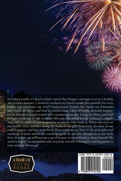 In today's world, it's hard to find a novel that brings a message to us in a healthy and positive manner. I, however, worked very hard to make that possible for every reader who purchases my novel! Inspirational Stories that Spark Our Emotions and Touch the Heart and Soul is a novel about a host of highly desirable Inspirational Stories wrapped around life's circumstances that Touch the Heart and Soul and give meaning to our everyday lifestyle. The novel brings curiosity, compassion, and an uplift of encouragement to anyone who reads it. When our eyes see our hands, voice, and feet doing the work of our gifts from God, the door of our soul flies open, and love steps forth. If we conform our lives to the principles and teachings of Jesus and let his teachings guide us and live through us in our daily lives, in return, we will become a ray of beauty, in resemblance to Jesus himself. My novel is highly recommended and creatively written to bring joy and happiness to your reading adventure.