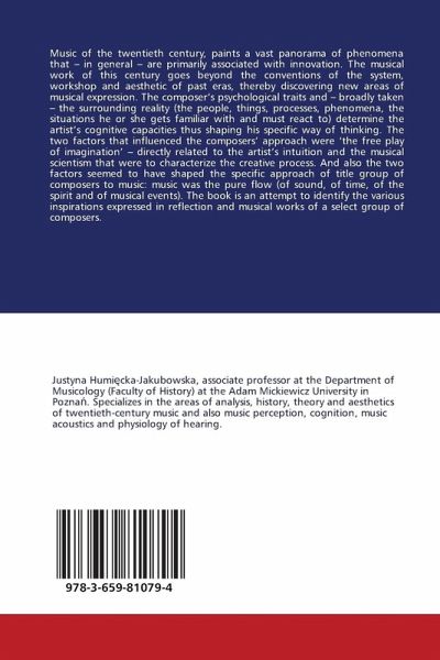 Music of the twentieth century, paints a vast panorama of phenomena that - in general - are primarily associated with innovation. The musical work of this century goes beyond the conventions of the system, workshop and aesthetic of past eras, thereby discovering new areas of musical expression. The composer's psychological traits and - broadly taken - the surrounding reality (the people, things, processes, phenomena, the situations he or she gets familiar with and must react to) determine the artist's cognitive capacities thus shaping his specific way of thinking. The two factors that influenced the composers' approach were 'the free play of imagination' - directly related to the artist's intuition and the musical scientism that were to characterize the creative process. And also the two factors seemed to have shaped the specific approach of title group of composers to music: music was the pure flow (of sound, of time, of the spirit and of musical events). The book is an attempt to identify the various inspirations expressed in reflection and musical works of a select group of composers.