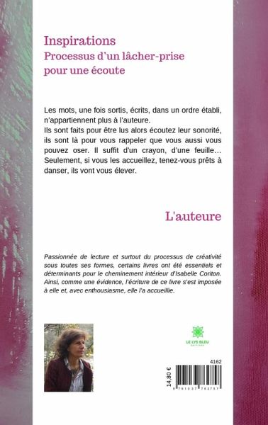Les mots, une fois sortis, écrits, dans un ordre établi, n'appartiennent plus à l'auteure. Ils sont faits pour être lus alors écoutez leur sonorité, ils sont là pour vous rappeler que vous aussi vous pouvez oser. Il suffit d'un crayon, d'une feuille... Seulement, si vous les accueillez, tenez-vous prêts à danser, ils vont vous élever.