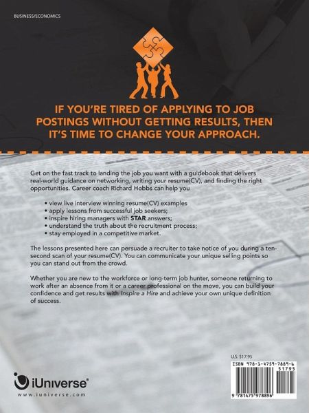If you’re tired of applying to job postings without getting results, then it’s time to change your approach. Get on the fast track to landing the job you want with a guidebook that delivers real-world guidance on networking, writing your resume(CV), and finding the right opportunities. Career coach Richard Hobbs can help you • view live interview winning resume(CV) examples • apply lessons from successful job seekers; • inspire hiring managers with STAR answers; • understand the truth about the recruitment process; • stay employed in a competitive market. The lessons presented here can persuade a recruiter to take notice of you during a ten-second scan of your resume(CV). You can communicate your unique selling points so you can stand out from the crowd. Whether you are new to the workforce or long-term job hunter, someone returning to work after an absence from it or a career professional on the move, you can build your confidence and get results with Inspire a Hire and achieve your own unique definition of success.