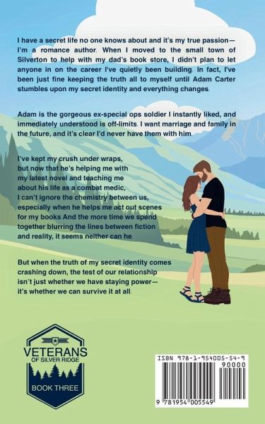I have a secret life no one knows about and it's my true passion-I'm a romance author. When I moved to the small town of Silverton to help with my dad's book store, I didn't plan to let anyone in on the career I've quietly been building. In fact, I've been just fine keeping the truth all to myself until Adam Carter stumbles upon my secret identity and everything changes. Adam is the gorgeous ex-special ops soldier I instantly liked, and immediately understood is off-limits. I want marriage and family in the future, and it's clear I'd never have them with him. I've kept my crush under wraps, but now that he's helping me with my latest novel and teaching me about his life as a combat medic, I can't ignore the chemistry between us, especially when he helps me act out scenes for my books. And the more time we spend together blurring the lines between fiction and reality, it seems neither can he. But when the truth of my secret identity comes crashing down, the test of our relationship isn't just whether we have staying power-it's whether we can survive it at all.