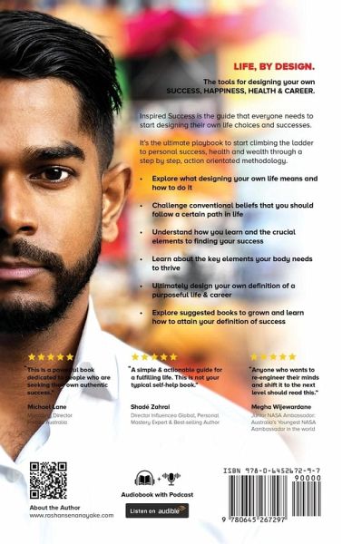 Life, by design. The tools for designing your own SUCCESS, HAPPINESS, HEALTH and CAREER. Inspired Success is the guide that everyone needs to start designing their own life choices and successes. It's the ultimate playbook to start climbing the ladder to personal success, health and wealth through a step by step, action orientated methodology. Explore what designing your own life means and how to do it Challenge conventional beliefs that you should follow a certain path in life Understand how you learn and the crucial elements to finding your success Learn about the key elements your body needs to thrive Ultimately design your own definition of a purposeful life & career Explore suggested books to grown and learn how to attain your definition of success
