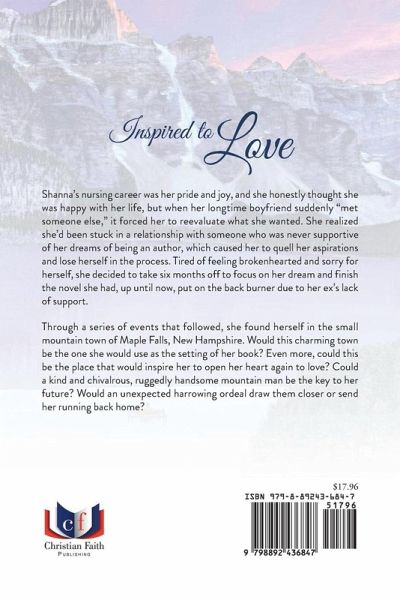 Shanna's nursing career was her pride and joy, and she honestly thought she was happy with her life, but when her longtime boyfriend suddenly "met someone else," it forced her to reevaluate what she wanted. She realized she'd been stuck in a relationship with someone who was never supportive of her dreams of being an author, which caused her to quell her aspirations and lose herself in the process. Tired of feeling brokenhearted and sorry for herself, she decided to take six months off to focus on her dream and finish the novel she had, up until now, put on the back burner due to her ex's lack of support. Through a series of events that followed, she found herself in the small mountain town of Maple Falls, New Hampshire. Would this charming town be the one she would use as the setting of her book? Even more, could this be the place that would inspire her to open her heart again to love? Could a kind and chivalrous, ruggedly handsome mountain man be the key to her future? Would an unexpected harrowing ordeal draw them closer or send her running back home?