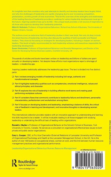 'An insightful text that considers why past attempts to identify and develop leaders have largely failed, and why the challenges of leadership are rapidly changing due to ever increasing competition, globalization, and the growth of new economies. This terrific overview of the strengths and weaknesses of the leading theories of leadership provides a roadmap for where leadership development must go in the future. Inspiring Leaders lives up to its title - this unique book provides a rich source of inspiration to all those who aspire to develop their leadership potential.' - Mitch G. Rothstein, Professor of Organizational Behaviour, Richard Ivey School of Business, The University of Western Ontario, Canada