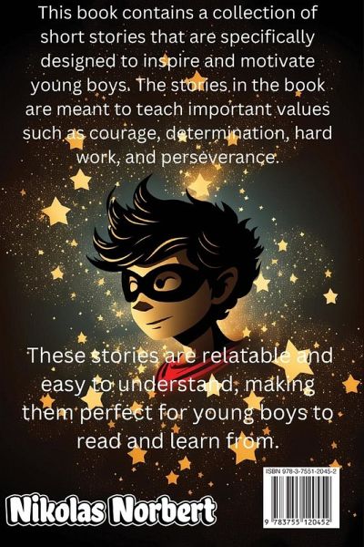 Inspiring Stories for Amazing Kids Empower your children to reach their full potential with our collection of motivational short stories. Designed to help kids develop confidence in themselves and their abilities, cope better with difficult situations, and talk openly with their parents about their problems, this book is an essential tool for parents and educators. The stories in this book are designed to inspire boys and girls to find the courage, inner strength, and self-love they need to deal with pressure and overcome challenges. Each story is accompanied by beautiful illustrations that help to bring the characters and their experiences to life. This book helps your kids to: ¿Develop confidence in themselves and their abilities ¿Cope better with difficult situations ¿Talk openly with their parents about their problems ¿Deal with pressure ¿Inspiring stories for boys about courage, inner strength, and self-love. Give your child the gift of inspiration and empowerment with our collection of motivational short stories for kids. This book will give them the tools they need to reach their full potential and become the amazing individuals they were meant to be.