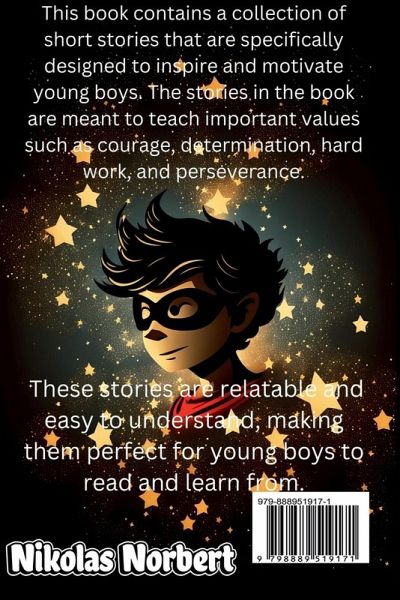 Inspiring Stories for Amazing Kids Empower your children to reach their full potential with our collection of motivational short stories. Designed to help kids develop confidence in themselves and their abilities, cope better with difficult situations, and talk openly with their parents about their problems, this book is an essential tool for parents and educators. The stories in this book are designed to inspire boys and girls to find the courage, inner strength, and self-love they need to deal with pressure and overcome challenges. Each story is accompanied by beautiful illustrations that help to bring the characters and their experiences to life. This book helps your kids to: ¿Develop confidence in themselves and their abilities ¿Cope better with difficult situations ¿Talk openly with their parents about their problems ¿Deal with pressure ¿Inspiring stories for boys about courage, inner strength, and self-love. Give your child the gift of inspiration and empowerment with our collection of motivational short stories for kids. This book will give them the tools they need to reach their full potential and become the amazing individuals they were meant to be.