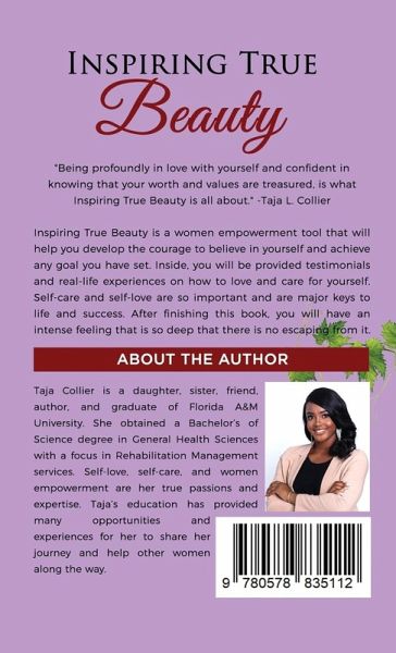 Inspiring True Beauty is a women empowerment tool that will help you develop the courage to believe in yourself and achieve any goal you have set. Inside, you will be provided testimonials and real-life experiences on how to love and care for yourself. Self-care and self-love are so important and are major keys to life and success. After finishing this book, you will have an intense feeling that is so deep that there is no escaping from it. This is a book that will help you discover your true self and give you the motivation you need to succeed.