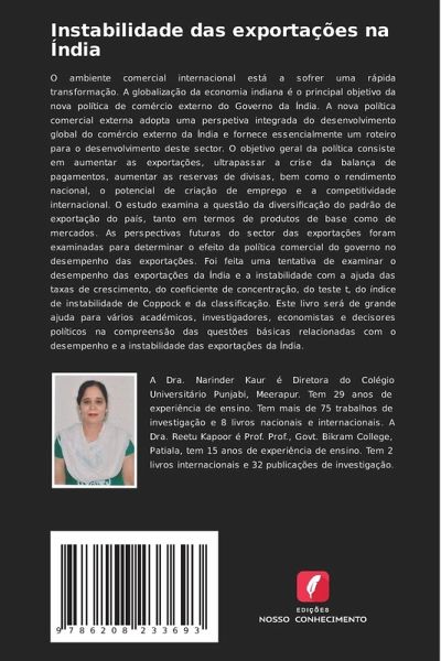 O ambiente comercial internacional está a sofrer uma rápida transformação. A globalização da economia indiana é o principal objetivo da nova política de comércio externo do Governo da Índia. A nova política comercial externa adopta uma perspetiva integrada do desenvolvimento global do comércio externo da Índia e fornece essencialmente um roteiro para o desenvolvimento deste sector. O objetivo geral da política consiste em aumentar as exportações, ultrapassar a crise da balança de pagamentos, aumentar as reservas de divisas, bem como o rendimento nacional, o potencial de criação de emprego e a competitividade internacional. O estudo examina a questão da diversificação do padrão de exportação do país, tanto em termos de produtos de base como de mercados. As perspectivas futuras do sector das exportações foram examinadas para determinar o efeito da política comercial do governo no desempenho das exportações. Foi feita uma tentativa de examinar o desempenho das exportações da Índia e a instabilidade com a ajuda das taxas de crescimento, do coeficiente de concentração, do teste t, do índice de instabilidade de Coppock e da classificação. Este livro será de grande ajuda para vários académicos, investigadores, economistas e decisores políticos na compreensão das questões básicas relacionadas com o desempenho e a instabilidade das exportações da Índia.