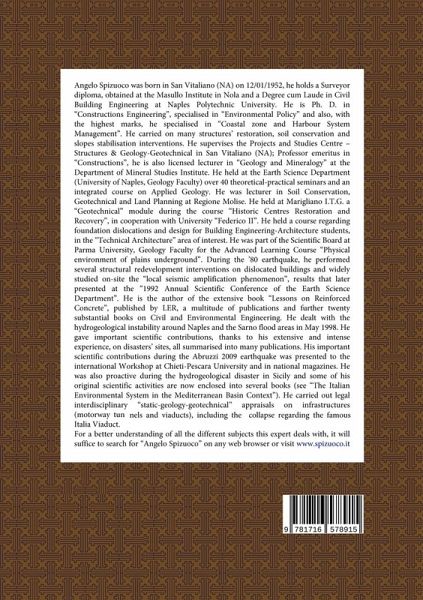 The analysis of masonry buildings cracks is quite a difficult task and so, because of this, almost always, scientific knowledge of experts called to perform such analysis is not enough, as together with that, it is really needed a vast experience gained by actually practicing on the work sites as well as observing and experiencing the various phenomena during a lifelong professional activity and, to this purpose, we remark that part of photographic records present on the various chapters comes from the authors' personal archives, fruit of long and intense work experience. In practice, often, it is needed to formulate, in a very short time, a diagnosis in regard of a dislocated building and/or in the ongoing structural dislocation phase, then it is needed to find out the causes in order to choose the proper urgent measures or definitive remedies, and responsibility is always a meaningful feature during the whole process, especially when the situation is serious and the time is short, as every hesitation could reveal itself fatal: only an excellent training and knowledge gained over time will allow to do so.
