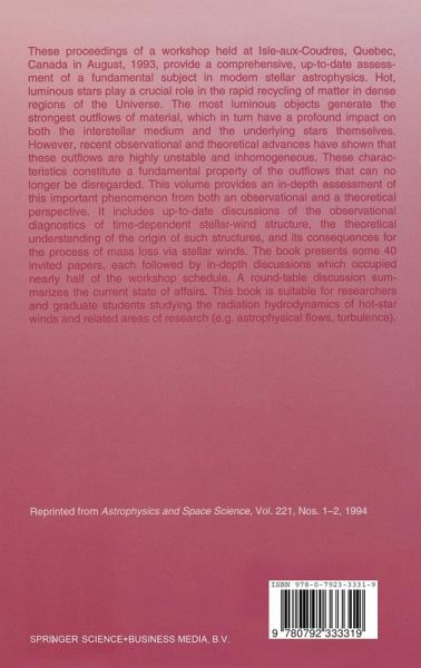 These proceedings of a workshop held at Isle-aux-Coudres, Quebec, Canada in August 1993, provide a comprehensive, up-to- date assessment of a fundamental subject in modern stellar astrophysics. Hot, luminous stars play a crucial role in the rapid recycling of matter in dense regions of the Universe. The most luminous objects generate the strongest outflows of material, which in turn have a profound impact on both the interstellar medium and the underlying stars themselves. However, recent observational and theoretical advances have shown that these outflows are highly unstable and inhomogeneous. These characteristics constitute a fundamental property of the outflows that can no longer be disregarded.
