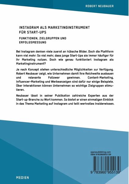 Bei Instagram denken viele zuerst an hübsche Bilder. Doch die Plattform kann viel mehr: So viel mehr, dass junge Start-Ups sie immer häufiger für ihr Marketing nutzen. Doch wie genau funktioniert Instagram als Marketinginstrument?Je nach Konzept stehen unterschiedliche Möglichkeiten zur Verfügung. Robert Neubauer zeigt, wie Unternehmen damit ihre Reichweite ausbauen und relevante Follower gewinnen. Content-Marketing, Influencer-Marketing und Werbeanzeigen sind dafür nur einige Beispiele. Über Interaktionen können Unternehmen so wichtige Zielgruppen stimulieren.Neubauer lässt in seiner Publikation zahlreiche Experten aus der Start-up-Branche zu Wort kommen. So bietet er einen einmaligen Einblick in das Thema Marketing auf Instagram und teilt wertvolles Insiderwissen.Aus dem Inhalt:- Social Media;- soziale Medien;- Entrepreneurial Marketinginstrument;- Marketingziele;- Follower