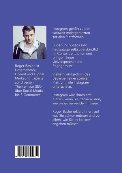 Sie kennen Soziale Netzwerke, aber vor allem Facebook? Sie möchten mehr über das am stärksten wachsende Social Network Instagram wissen? Sie sind Unternehmerin oder Unternehmer? Dann sind Sie mit diesem Buch auf der richtigen Spur. Alles was Sie als Unternehmen und Unternehmer über Instagram wissen müssen. Instagram gehört zu den weltweit meistgenutzten sozialen Plattformen. Bilder und Videos sind heutzutage selbstverständlich im Content enthalten und bringen Ihnen vielversprechendes Engagement. Vielfach wird jedoch das Betreiben einer sozialen Plattform wie Instagram unterschätzt. Instagram wird Ihnen erst nützen, wenn Sie genau wissen, wie Sie es verwenden müssen.