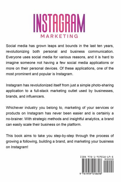 INSTAGRAM MARKETING Introducing the ultimate guide to Instagram marketing! Are you struggling to grow your Instagram following for your personal brand, business, or just for fun? Look no further! This book, "Instagram Marketing: A Guide to Growing Your Brand with Instagram" is here to teach you the ins and outs of promoting your brand on the world's largest photo-sharing platform. In this comprehensive guide, you'll learn how to:Run effective Instagram ads to reach your target audience Create visually stunning, engaging content that will keep your followers coming back for more Understand and analyze your Instagram analytics to track your growth and success We've compiled years of experience and expertise into this easy-to-follow guide, making it the perfect resource for anyone looking to take their Instagram marketing to the next level. Whether you're a small business owner, a social media influencer, or just looking to boost your personal brand, this book has something for everyone. Don't let your Instagram presence fall behind the competition. Purchase this book today, available in both print and digital formats, and start seeing real results on your account!