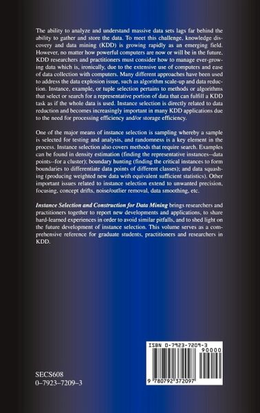 Instance Selection and Construction for Data Mining brings researchers and practitioners together to report new developments and applications, to share hard-learned experiences in order to avoid similar pitfalls, and to shed light on the future development of instance selection. This volume serves as a comprehensive reference for graduate students, practitioners and researchers in KDD.