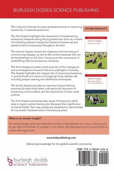 This collection highlights the need for improved biosecurity in livestock production as a result of increased disease risk, focussing primarily on pig, poultry and beef cattle production. Chapters review the emergence and re-emergence of key pathogens and the role of effective biosecurity measures in mitigating future disease outbreaks.
