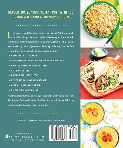 Revolutionize your Instant Pot with 100 brand-new recipes from Laurel Randolph, author of the #1 bestselling The Instant Pot Electric Pressure Cooker Cookbook. Sure your pressure cooker can make simple soups and cook rice, but it can do so much more! Officially licensed by Instant Pot®, The Instant Pot No-Pressure Cookbook takes home cooks far beyond boring basics and introduces them to the versatility and adaptability of this miraculous kitchen gadget. Laurel expertly mixes traditional cooking methods with the convenience of pressure cooking, and uses the Instant Pot® in unexpected ways, creating a wide range of dishes using fresh ingredients. She shares how one appliance can become the key to making healthy, flavorful meals, without taking hours of your time. The book features: - 100 creative, delicious recipes for every meal, all designed to work perfectly with the Instant Pot® - Dishes based on cuisines from around the world-from Biryani with Currants and Cashews to Chorizo Hominy Grits and Shakshuka with Harissa and Feta. - Tips and hints to get the most out of your electric pressure cooker - Beautiful full color photos throughout With recipes that cover every meal and food group-from Spiced Banana Steel Cut Oats and Green Curry with Chicken, Eggplant, and Shishito Peppers to Vietnamese Brisket Tacos and even Pineapple Rum Mug Cakes-The Instant Pot ® No-Pressure Cookbook is an indispensable companion for every electric pressure cooker!