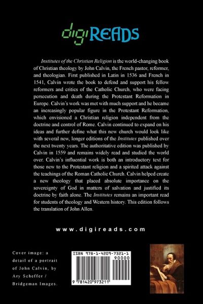 "Institutes of the Christian Religion" is the world-changing book of Christian theology by John Calvin, the French pastor, reformer, and theologian. First published in Latin in 1536 and French in 1541, Calvin wrote the book to defend and support his fellow reformers and critics of the Catholic Church, who were facing persecution and death during the Protestant Reformation in Europe. Calvin's work was met with much support and he became an increasingly popular figure in the Protestant Reformation, which envisioned a Christian religion independent from the doctrine and control of Rome. Calvin continued to expand on his ideas and further define what this new church would look like with several new, longer editions of the "Institutes" published over the next twenty years. The authoritative edition was published by Calvin in 1559 and remains widely read and studied the world over. Calvin's influential work is both an introductory text for those new to the Protestant religion and a spirited attack against the teachings of the Roman Catholic Church. Calvin helped create a new theology that placed absolute importance on the sovereignty of God in matters of salvation and justified its doctrine by faith alone. The "Institutes" remains an important read for students of theology and Western history. This edition is printed on premium acid-free paper and follows the translation of John Allen.