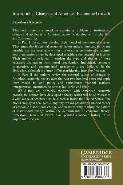 This book presents a model for examining problems of institutional change and applies it to American economic development in the nineteenth and twentieth centuries.