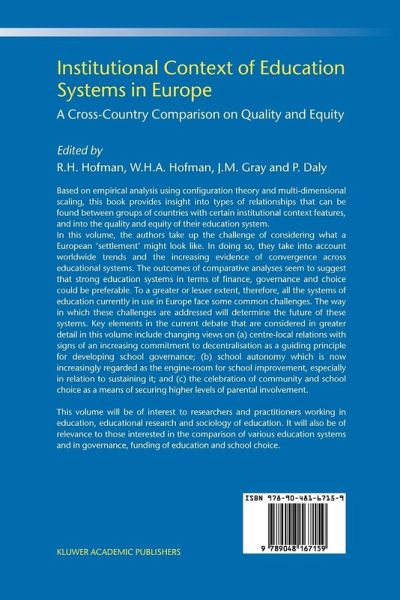 Based on empirical analysis using configuration theory and multi-dimensional scaling, this book provides insight into types of relationships that can be found between groups of countries with certain institutional context features, and into the quality and equity of their education system.