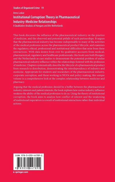 With data drawn from over 80 qualitative accounts from medical, pharmaceutical, regulatory and healthcare professionals, this book uses both Hungary and the Netherlands as case studies to demonstrate the potential problem of undue pharmaceutical industry influence within the relationships fostered with the profession of medicine. Chapters systematically describe the lifecycle of a pharmaceutical product from research to distribution, demonstrating the interdependency of industry and medicine. Arguing that the medical profession should be a buffer between the pharmaceutical industry interests and patient interests, the book explores how undue industry influence weakens the ability of the medical profession to do so. Using the theory of institutional corruption, the book aims to analyze how conflict of interest and the weakening of institutional imperatives is a result of institutional interactions rather than individual actions.