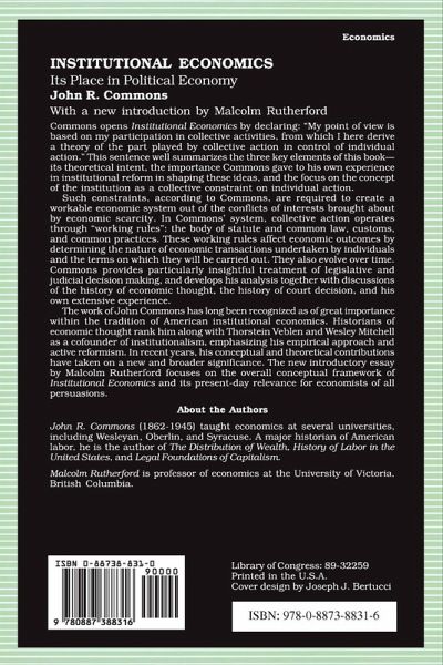 This book deals with a variety of issues including matters of method, particularly John R. Commons' pragmatism, the role of scarcity and conflict in economics as opposed to a presumed harmony of interest, and the importance of custom and common law as opposed to individual pleasures and pains.