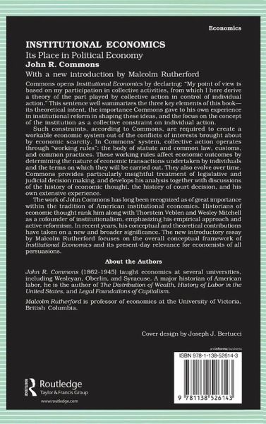 This book deals with a variety of issues including matters of method, particularly John R. Commons' pragmatism, the role of scarcity and conflict in economics as opposed to a presumed harmony of interest, and the importance of custom and common law as opposed to individual pleasures and pains.