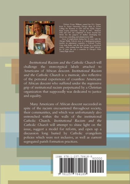 Institutional Racism and the Catholic Church will challenge the stereotypical labels attached to Americans of African descent. Institutional Racism and the Catholic Church is a memoir, also reflective of the personal experiences of countless Americans of African descent who suffered under the regressive grip of institutional racism perpetuated by a Christian organization that supposedly was dedicated to justice and equality. Many Americans of African descent succeeded in spite of the racism encountered throughout society, their communities, and which was unfortunately also entrenched within the walls of the institutional Catholic Church. Institutional Racism and the Catholic Church will attempt to shine light on the issue, suggest a model for reform, and open up a discussion long buried by Catholic evangelism policies which were not inclusive, as well as look at current segregated parish formation practices.