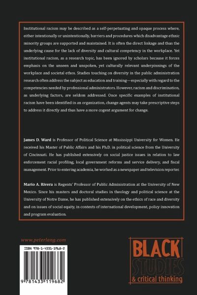 Institutional racism may be described as a self-perpetuating and opaque process where, either intentionally or unintentionally, barriers and procedures which disadvantage ethnic minority groups are supported and maintained. It is often the direct linkage and thus the underlying cause for the lack of diversity and cultural competency in the workplace. Yet institutional racism, as a research topic, has been ignored by scholars because it forces emphasis on the unseen and unspoken, yet culturally relevant underpinnings of the workplace and societal ethos. Studies touching on diversity in the public administration research often address the subject as education and training - especially with regard to the competencies needed by professional administrators. However, racism and discrimination, as underlying factors, are seldom addressed. Once specific examples of institutional racism have been identified in an organization, change agents may take prescriptive steps to address it directly and thus have a more cogent argument for change.