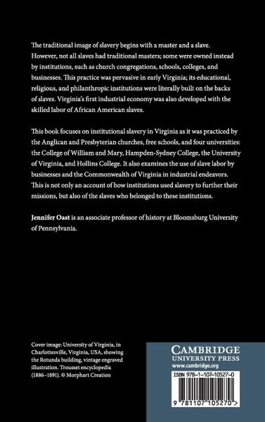 The traditional image of slavery begins with a master and a slave. However, not all slaves had traditional masters; some were owned instead by institutions, such as church congregations, schools, colleges, and businesses. This practice was pervasive in early Virginia; its educational, religious, and philanthropic institutions were literally built on the backs of slaves. Virginia's first industrial economy was also developed with the skilled labor of African American slaves. This book focuses on institutional slavery in Virginia as it was practiced by the Anglican and Presbyterian churches, free schools, and four universities: the College of William and Mary, Hampden-Sydney College, the University of Virginia, and Hollins College. It also examines the use of slave labor by businesses and the Commonwealth of Virginia in industrial endeavors. This is not only an account of how institutions used slavery to further their missions, but also of the slaves who belonged to institutions.