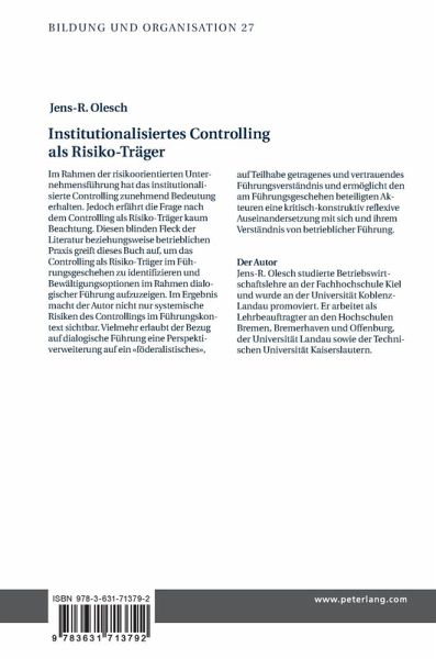 Im Rahmen der risikoorientierten Unternehmensführung hat das institutionalisierte Controlling zunehmend Bedeutung erhalten. Jedoch erfährt die Frage nach dem Controlling als Risiko-Träger kaum Beachtung. Diesen blinden Fleck der Literatur beziehungsweise betrieblichen Praxis greift dieses Buch auf, um das Controlling als Risiko-Träger im Führungsgeschehen zu identifizieren und Bewältigungsoptionen im Rahmen dialogischer Führung aufzuzeigen. Im Ergebnis macht der Autor nicht nur systemische Risiken des Controllings im Führungskontext sichtbar. Vielmehr erlaubt der Bezug auf dialogische Führung eine Perspektiverweiterung auf ein «föderalistisches», auf Teilhabe getragenes und vertrauendes Führungsverständnis und ermöglicht den am Führungsgeschehen beteiligten Akteuren eine kritisch-konstruktiv reflexive Auseinandersetzung mit sich und ihrem Verständnis von betrieblicher Führung.