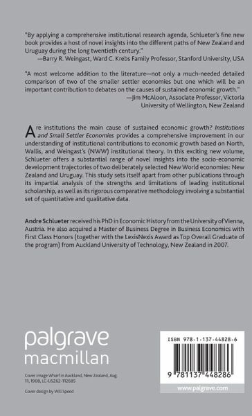 Are institutions the main cause of sustained economic growth? Institutions and Small Settler Economies provides a comprehensive improvement in our understanding of institutional contributions to economic growth based on North, Wallis and Weingast's (NWW) institutional theory. In this exciting new volume, Schlueter offers a substantial range of novel insights into the socio-economic development trajectories of two deliberately selected New World economies: New Zealand and Uruguay. This study sets itself apart from other publications through its impartial analysis of the strengths and limitations of leading institutional scholarship, as well as its rigorous comparative methodology involving a substantial set of quantitative and qualitative data.
