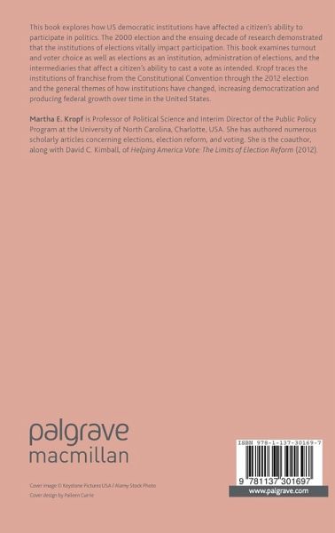 This book explores how the United States institutions of democracy have affected a citizen's ability to participate in politics. The 2000 election and the ensuing decade of research demonstrated that that the institutions of elections vitally affect participation. This book examines turnout and vote choice, as well as elections as an institution, administration of elections and the intermediaries that affect a citizen's ability to cast a vote as intended. Kropf traces the institutions of franchise from the Constitutional Convention through the 2012 election and the general themes of how institutions have changed increasing, democratization and production federal growth over time in the United States.