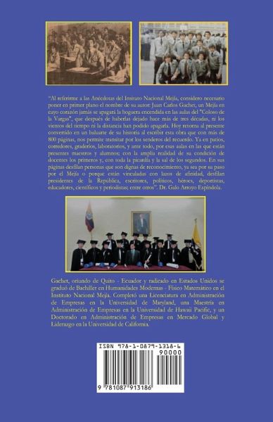 Recopilación de las memorias de nuestro paso por el Instituto Nacional Mejía. El objetivo primordial de esta publicación es promocionar la amistad y compartir las experiencias de sus integrantes a lo largo de sus trayectorias durante la vida estudiantil y posterior al colegio que los formo para ser unos profesionales y proyectar esas vivencias a las futuras generaciones. Por favor, comparta sus anécdotas y fotografías para la publicación de la próxima edición de este libro. Espero que el encuentro en el colegio no sea el último y mantenernos en contacto siempre. Si no les incomoda me gustaría una biografía de su persona, no tiene que ser extensiva. Escribe lo básico, como por ejemplo alguna anécdota del colegio, acontecimientos después de egresar, profesión, familia, pasión y metas para el futuro. Ahora quiero expresar mi más sincero agradecimiento a todos los compañeros y familiares quienes colaboraron con sus relatos para que esta publicación se haga realidad. Espero que sea de su agrado y al leer las anécdotas se remonten a esos tiempos que jamás se olvidan y más que nada la gran amistad que hemos forjado a través del tiempo sea para siempre y nos encontremos nuevamente con nuestras familias en un futuro cercano. Nos hemos remontado a la época de oro de nuestros tiempos como estudiantes del Instituto Nacional Mejía. Todas aquellas vivencias durante nuestro paso por las aulas del templo del saber, el cual nos impulsó a ser personas de bien. Estas anécdotas tienen de todo un poco y son un homenaje a todos los compañeros que colaboraron para la publicación de este libro. Ustedes son los autores y protagonistas de estas experiencias que serán transmitidas a las diferentes generaciones de estudiantes, así como a nuestras familias y otros ávidos lectores para que disfruten de estos relatos de la vida más hermosa de nuestros tiempos como estudiantes de colegio. Sería poco modesto decir que estuvimos en la mejor versión del Patrón Mejía, pero éramos campeones en todo, o casi todo. La selección de básquet campeona todos los años que fui estudiante, fútbol, atletismo, el grupo folklórico, la banda de guerra, en fin, tantas cosas más. Gracias compañeros: Julio Tinajero, Diego Gabriel Gachet Páez, William Beker Aguinaga Ferro, Fausto Ramiro Arias Cruz, Carlos Marcelo Albuja Cevallos, Juan Carlos Cabrera Perugachi, Freddy Abelardo Calderón Saá, Edison Fernando Chávez Garrido, Vicente Lenín Donoso Yerovi, Luis Fabián Izurieta Schettini, Manuel Anselmo Mancero Haro, Víctor Cristóbal Morocho Moreno, Álvaro Gabriel Villavicencio Tumipamba, Fernando Efraín Vallejo León, Oscar Omar Albán Villena, Freddy Kelvin Arias Toscano, José Ramiro Ayala Carrillo, Eddy Patricio Chango López, Raúl Xavier Domínguez Egas, Néstor Marcelo Esparza Cuadrado, Juan Carlos Gachet Castro, Guido Gaona León, Jaime Oswaldo Guerrero Benalcázar, Raúl Enoch Ibarra Rivadeneira, Fidel Vasily Jirón Cruz, Mario Eduardo López Guamán, José Antonio Lovato Villarreal, Sergio Segundo Moreno Torres, Juan Manuel Muñoz Valverde, Celso Geovanny Palacios Arturo, Kléver Arturo Proaño Velásquez, Orlando Marcelo Rojas Maldonado, Pablo Vinicio Sánchez Sánchez, Ricardo Iván Silva Álvarez, Hugo Patricio Tobar Buitrón, Bolermán Boanerges Tobar Duque, Byron Javier Trujillo Solórzano, Vicente Patricio Espinosa Boada, Oswaldo Rodrigo Raza Merino, José Benjamín Chávez Pesantes, Nelson Ricardo Trujillo Salazar, Jorge Rodríguez Santamaría, Jaime Marcelo Subía Gordillo, Charles Alaín Gachet Herrera, Luis Roberto Gachet Castro, Andrés Augusto Gachet Castro, Jorge Washington Nieto Arévalo, Darwin W. Portilla Hernández, Aldo Santiago Salazar Álava, Iván Ruiz González, Luis Gabriel Gachet Valencia, Juan Edmundo Gachet Valencia, José Hipólito Gachet Valencia, Byron Augusto Gachet Páez, Milton Danilo Gachet Páez, Pedro Rubén Román Naranjo.