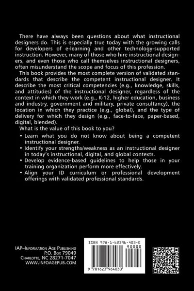 This book provides the most current and complete version of statements defining a competent instructional designer, for those who are or aspire to practice in virtually any context, anywhere in the world. The research conducted to update and validate these standards included obtaining feedback from over 1000 senior to novice practitioners and scholars working in the North, South, and Central Americas, Europe, Asia, Australia and New Zealand, and African nations. This book is intended for those who hire, train, and prepare instructional designers and those who work (or plan to work) as instructional designers. It provides an updated description of the profession. It lays out the most critical competencies (e.g., knowledge, skills, and attitudes) of the successful instructional designer, regardless of the context in which they work (e.g., K-12, higher education, business and industry, government and military, private consultancy, informal or formal), the location in which they practice (e.g., the Americas, Europe, Asia, Africa, Australia), and the type of delivery for which they design (e.g., face-to-face, paper-based, digital, blended). There have always been questions about what instructional designers do... such questions led to the creation of ibstpi more than 30 years ago. Yet, this questioning is especially true today with the growing call for developers of e-learning and other technology-supported instruction. The term 'instructional designer' seems to have become a generic phrase that now lends itself to a broad range of meanings, and yet, it is a definitive profession with a specific scope and focus. The more widely the label 'instructional designer' is used, the more room there is for misunderstanding about what is called for in skills, behaviors, competencies, and outputs. What is called for in the midst of this learning boom is clarity, direction and uniform expectations. With a common understanding, we can help avert poor design, especially in e-learning and technology-supported instruction, which often fails learners or has high attrition rates. Grounded on rigorous research, consulting hundreds of practitioners around the world, this book articulates and explains what is required to be a competent instructional designer. It includes the set of standards that clarifies the profession and provides a set of competencies for creating hiring schemes, professional development guidelines, performance assessments, work plans, and curriculum to prepare instructional designers.The instructional designer profession continues to grow in wake of emerging technologies, new pedagogies, and virtual learning environments. However, many educators, instructors, and even training specialists often lack the competencies to design, develop, implement, and evaluate these newer types of instructional solutions. This book articulates and explains the competencies that are required to be a competent instructional designer.