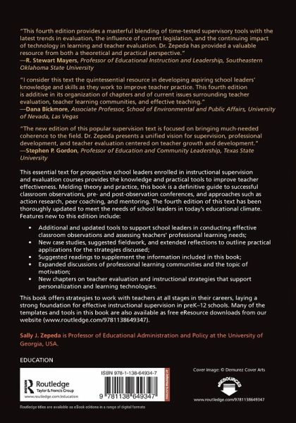 This essential text for prospective school leaders enrolled in instructional supervision and evaluation courses provides the knowledge and practical tools to improve teacher effectiveness. Melding theory and practice, this book is a definitive guide to successful classroom observations, pre- and post-observation conferences, and approaches such as action research, peer coaching, and mentoring. The fourth edition of this text has been thoroughly updated to meet the needs of school leaders in today's educational climate. Features new to this edition include: Additional and updated tools to support school leaders in conducting effective classroom observations and assessing teachers' professional learning needs; New case studies, suggested fieldwork, and extended reflections to outline practical applications for the strategies discussed; Suggested readings to supplement the information included in this book; Expanded discussions of professional learning communities and the topic of motivation; New chapters on teacher evaluation and instructional strategies that support personalization and learning technologies. This book offers strategies to work with teachers at all stages in their careers, laying a strong foundation for effective instructional supervision in PreK-12 schools. Many of the templates and tools in this book are also available as free eResource downloads from our website (www.routledge.com/9781138649347).