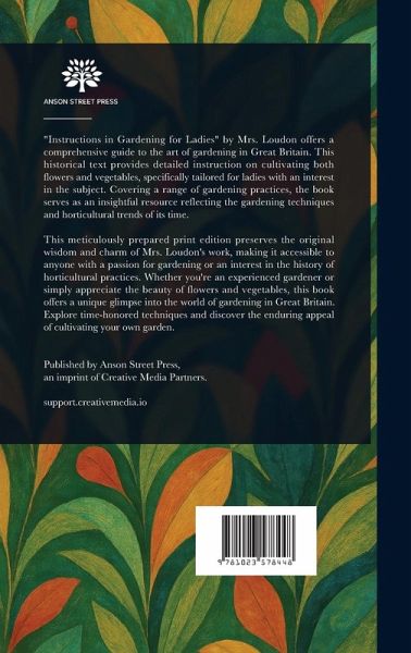 "Instructions in Gardening for Ladies" by Mrs. Loudon offers a comprehensive guide to the art of gardening in Great Britain. This historical text provides detailed instruction on cultivating both flowers and vegetables, specifically tailored for ladies with an interest in the subject. Covering a range of gardening practices, the book serves as an insightful resource reflecting the gardening techniques and horticultural trends of its time. This meticulously prepared print edition preserves the original wisdom and charm of Mrs. Loudon's work, making it accessible to anyone with a passion for gardening or an interest in the history of horticultural practices. Whether you're an experienced gardener or simply appreciate the beauty of flowers and vegetables, this book offers a unique glimpse into the world of gardening in Great Britain. Explore time-honored techniques and discover the enduring appeal of cultivating your own garden. This work has been selected by scholars as being culturally important, and is part of the knowledge base of civilization as we know it. This work is in the public domain in the United States of America, and possibly other nations. Within the United States, you may freely copy and distribute this work, as no entity (individual or corporate) has a copyright on the body of the work. Scholars believe, and we concur, that this work is important enough to be preserved, reproduced, and made generally available to the public. We appreciate your support of the preservation process, and thank you for being an important part of keeping this knowledge alive and relevant.