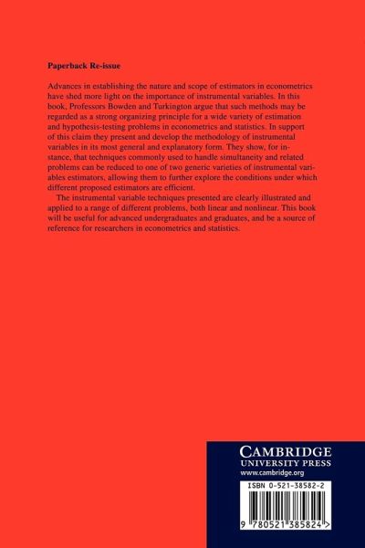 Recent advances in establishing the nature and scope of estimators in econometrics have shed more light on the importance of instrumental variables. In this book, the authors argue that such methods may be regarded as a strong organizing principle for a wide variety of estimation and hypothesis testing problems in econometrics and statistics. In support of this claim they present and develop the methodology of instrumental variables in its most general and explanatory form. They show, for instance, that techniques commonly used to handle simultaneity and related problems can be reduced to one of two generic variables of instrumental variables estimators, allowing them to explore further the conditions under which different proposed estimators are efficient.