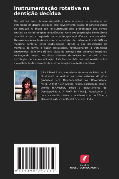 Nos últimos anos, tem-se assistido a uma mudança de paradigma no tratamento de dentes decíduos com envolvimento pulpar. O conceito inicial de extração há muito que foi substituído pela preservação dos dentes através de várias terapias endodônticas. Uma boa preparação biomecânica constitui a marca registada de uma terapia endodôntica bem sucedida. Abriu-se um novo horizonte com a introdução de instrumentos de NiTi na medicina dentária. Estes instrumentos, devido à sua propriedade de memória de forma e super elasticidade, revolucionaram o tratamento endodôntico. Este livro dá uma visão da evolução dos sistemas rotatórios ao longo do tempo, dos vários sistemas disponíveis no mercado e das estratégias para a sua utilização. Este livro também faz uma revisão sobre a modificação das técnicas de instrumentação em dentes decíduos.