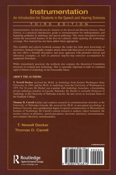 While keeping the scope and essential thrust of the original book unchanged, this third edition has been updated to reflect the latest technology. For instance, important revisions have been made to a few chapters, while one chapter has been eliminated and replaced with a newer chapter dealing with recent developments in digital and consumer electronics that are relevant to laboratory instrumentation. The authors hope the readers of this text will be more confident with instrumentation and more willing to experiment with it, as well as be able to appreciate the possible ways that electronic instrumentation can be used in their work. The book was written with the undergraduate in speech and hearing sciences uppermost in mind. Instead of detailed information about individual pieces of instrumentation, a more basic and broad descriptive approach has been used. Throughout, examples have been provided regarding how certain pieces of equipment can be used in the clinic or laboratory. One or more step-by-step exercises are included at the end of certain chapters to help students obtain hands-on experience and equipment flowcharts help reinforce the exercise. Students who complete this book will have a basic understanding of the major pieces of instrumentation in the hearing and speech clinic/laboratory.