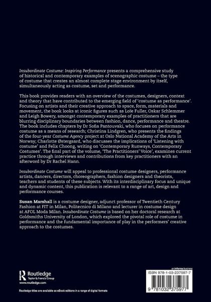 Insubordinate Costume: Inspiring Performance presents a comprehensive study of historical and contemporary examples of scenographic costume - the type of costume that creates an almost complete stage environment by itself, simultaneously acting as costume, set and performance.