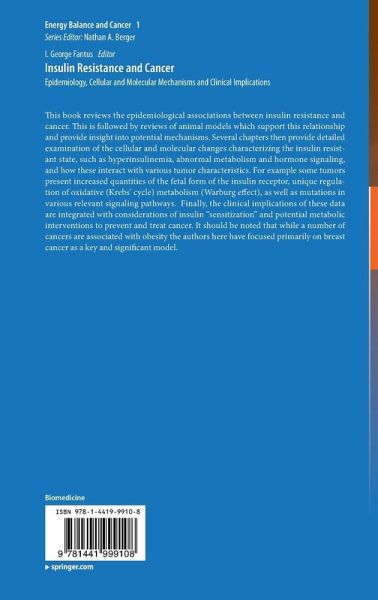 This book reviews the epidemiological associations between insulin resistance and cancer. This is followed by reviews of animal models which support this relationship and provide insight into potential mechanisms. Several chapters then provide detailed examination of the cellular and molecular changes characterizing the insulin resistant state, such as hyperinsulinemia, abnormal metabolism and hormone signaling, and how these interact with various tumor characteristics. For example some tumors present increased quantities of the fetal form of the insulin receptor, unique regulation of oxidative (Krebs' cycle) metabolism (Warburg effect), as well as mutations in various relevant signaling pathways. Finally, the clinical implications of these data are integrated with considerations of insulin "sensitization" and potential metabolic interventions to prevent and treat cancer. It should be noted that while a number of cancers are associated with obesity the authors here have focused primarily on breast cancer as a key and significant model.