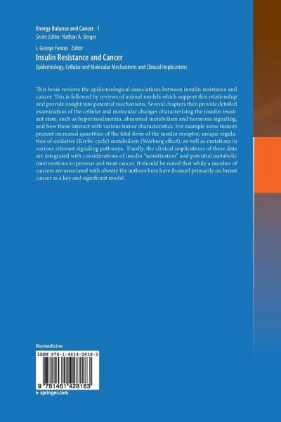 This book reviews the epidemiological associations between insulin resistance and cancer. This is followed by reviews of animal models which support this relationship and provide insight into potential mechanisms. Several chapters then provide detailed examination of the cellular and molecular changes characterizing the insulin resistant state, such as hyperinsulinemia, abnormal metabolism and hormone signaling, and how these interact with various tumor characteristics. For example some tumors present increased quantities of the fetal form of the insulin receptor, unique regulation of oxidative (Krebs' cycle) metabolism (Warburg effect), as well as mutations in various relevant signaling pathways. Finally, the clinical implications of these data are integrated with considerations of insulin "sensitization" and potential metabolic interventions to prevent and treat cancer. It should be noted that while a number of cancers are associated with obesity the authors here have focused primarily on breast cancer as a key and significant model.