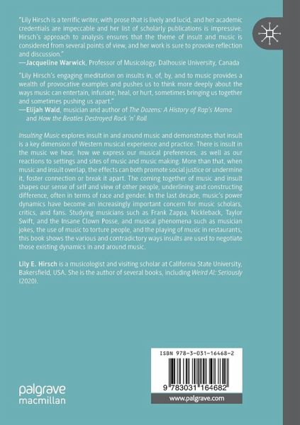Insulting Music explores insult in and around music and demonstrates that insult is a key dimension of Western musical experience and practice. There is insult in the music we hear, how we express our musical preferences, as well as our reactions to settings and sites of music and music making. More than that, when music and insult overlap, the effects can both promote social justice or undermine it, foster connection or break it apart. The coming together of music and insult shapes our sense of self and view of other people, underlining and constructing difference, often in terms of race and gender. In the last decade, music's power dynamics have become an increasingly important concern for music scholars, critics, and fans. Studying musicians such as Frank Zappa, Nickleback, Taylor Swift, and the Insane Clown Posse, and musical phenomena such as musician jokes, the use of music to torture people, and the playing of music in restaurants, this book shows the various and contradictory ways insults are used to negotiate those existing dynamics in and around music.