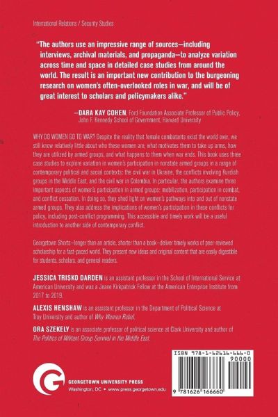 "Why do women go to war? Despite the reality that female combatants exist the world over, we still know relatively little about who these women are, what motivates them to take up arms, how they are utilized by armed groups, and what happens to them when war ends. This book uses three case studies to explore variation in women's participation in nonstate armed groups in a range of contemporary political and social contexts: the civil war in Ukraine, the conflicts involving Kurdish groups in the Middle East, and the civil war in Colombia. In particular, the authors examine three important aspects of women's participation in armed groups: mobilization, participation in combat, and conflict cessation. In doing so, they shed light on women's pathways into and out of nonstate armed groups. They also address the implications of women's participation in these conflicts for policy, including postconflict programming. This is an accessible and timely work that will be a useful introduction to another side of contemporary conflict." --