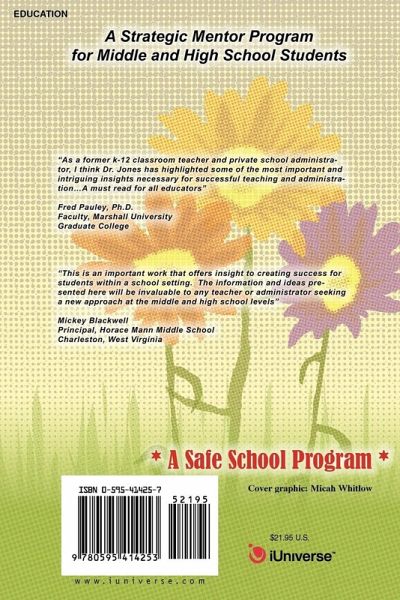 "As a former k-12 classroom teacher and private school administrator, I think Dr. Jones has highlighted some of the most important and intriguing insights necessary for successful teaching and administration...A must read for all educators." Fred Pauley, Ph.D. Faculty, Marshall University Graduate College "This is an important work that offers insight to creating success for students within a school setting. The information and ideas presented here will be invaluable to any teacher or administrator seeking a new approach at the middle and high school levels." Mickey Blackwell Principal, Horace Mann Middle School Charleston, West Virginia